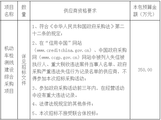 機(jī)動車檢測線建設(shè)綜合采購項(xiàng)目招標(biāo)公告